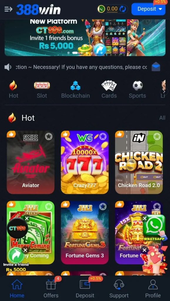 388Win Game is built to be simple and easy for new users. The app has a clean design and smooth system so players can easily explore different games. It also supports common payment methods used in Pakistan, which makes deposits and withdrawals more convenient for users.