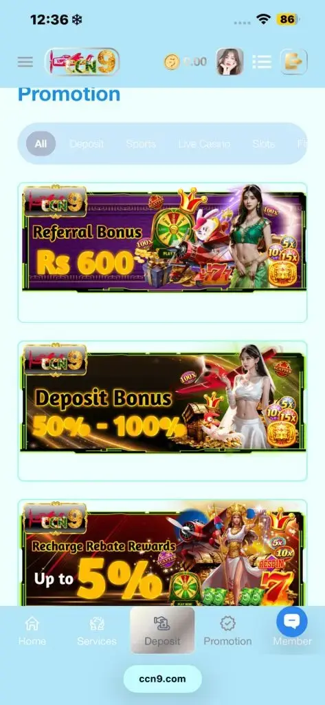 The Ccn9 application has a clean and simple layout. All important options like games, wallet, rewards, and profile settings are clearly visible on the home screen. Even new users can easily understand how to use the app.